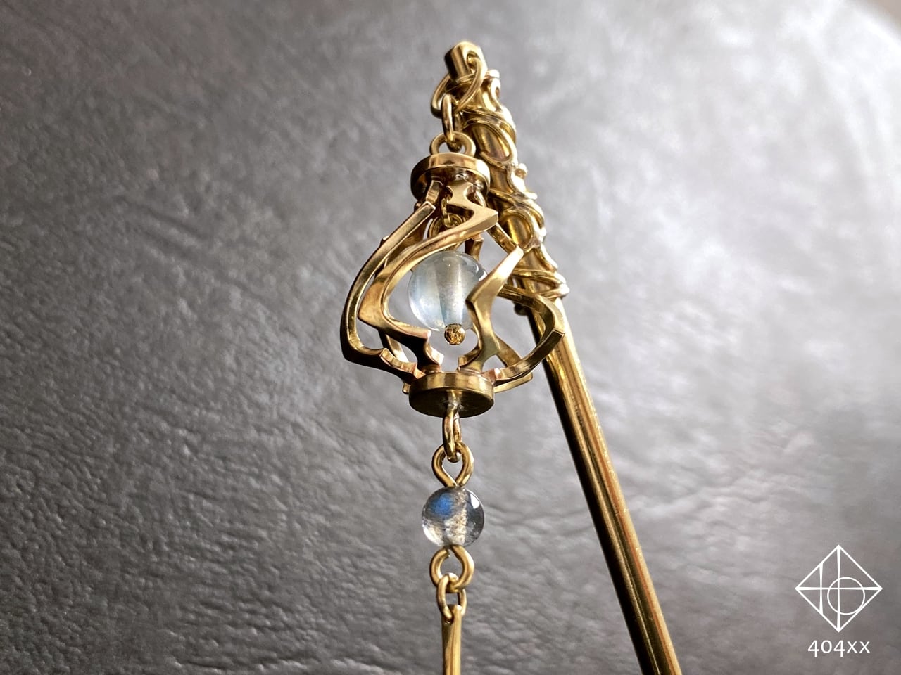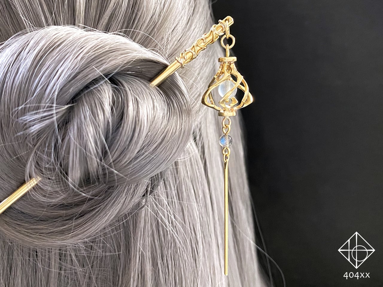 簪は軸の先端にも装飾を施してファンタジックな印象が増します。