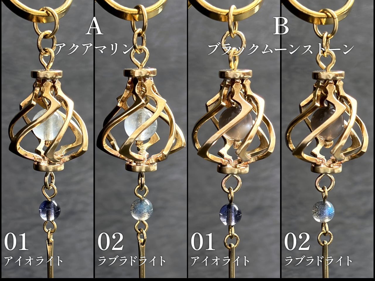 下部の石はアイオライトとラブラドライトの2種類からお好きなほうを選べます。