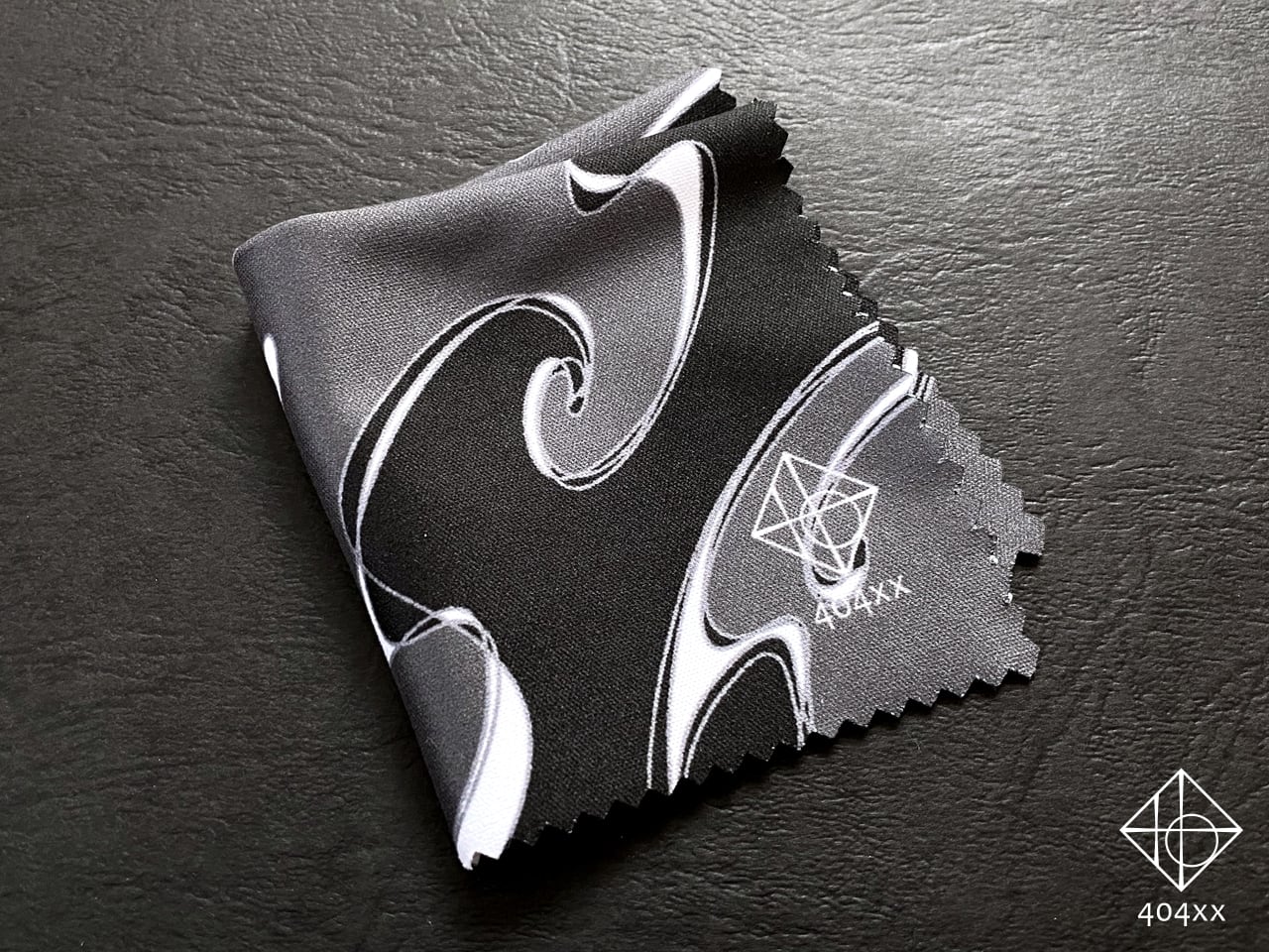 404xxの彫金作品にもよく取り入れている曲線デザイン柄のマイクロファイバークロスです。
