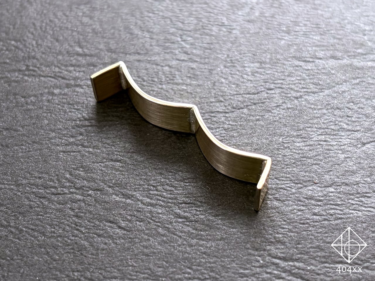 両面ヘアラインの落ち着いた質感に、なめらかに磨いた縁がツヤッと光る仕上げです。